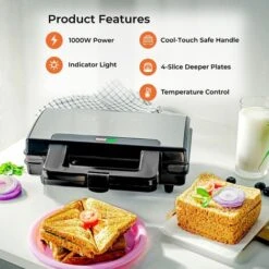Toastie Sandwich Maker Deep Fill 4 Slice Toaster XL Grill Press 1000W Geepas