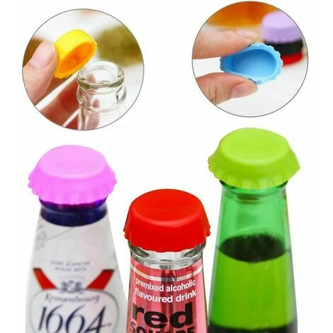 LITZEE 6pcs Silicone Crown Caps, Bottle Stopper, Eco-friendly Silicone Stopper, Reusable Beer Stopper Random Colour