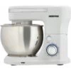 【Planetary stirring technology and 6 l container for perfect kneading & stirring results】The 5.5 l bowl made of food-grade stainless steel will meet all your requirements and is dishwasher safe. The included splash guard allows for clean working and is easy to clean. Due to the planetary stirring system, a mechanism that makes the stirring tool move beyond the circular center, all areas inside the mixing bowl will be reached uniformly.