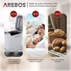 Be the first to review “AREBOS Bread Maker 1500g With 15 Programs 2 Dough Hooks Timer LCD Display 3 Browning Degrees And Bread Sizes 850 W White” Cancel reply