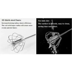 1.Semi-Automatic Whisk: The stainless steel semi-automatic whisk with automatic rotation is a marvel design in the kitchen. It saves effort and gets the job done much faster than a regular non-electric whisk. still battery. Simply squeeze the handle and the whisk’s stainless steel blades spin, no more turning your wrist! The ergonomic handle provides a secure and comfortable grip for any mixing task.