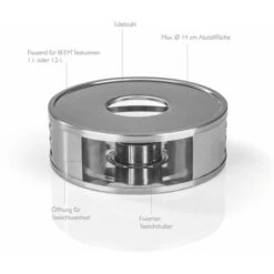 The BEEM STÖVCHEN pot warmer in stainless steel works simply and effectively with a humble tea light but offers high-quality and timeless elegance with its matte stainless steel finish.