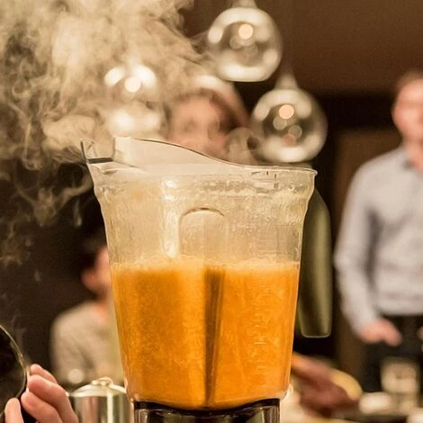 6. The blade in the container is fast enough to generate frictional heat, allowing the cold ingredients to be steamed up in about six minutes. Just drop a drop of detergent and warm water, it will clean itself in 30 to 60 seconds.