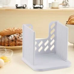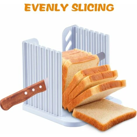 PORTABLE USE AND CARRY: Simply place a loaf of bread in the frame and the rails hold the knife in place for sliding. This bread slicer is convenient because it folds up for easy storage.