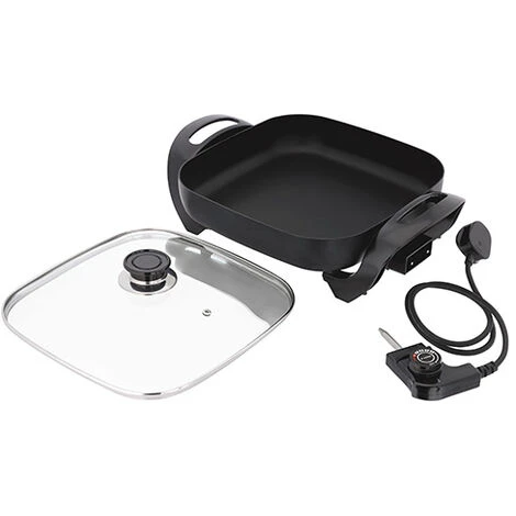 Regulated thermostat: Low for slow cooked casseroles and braising – or buffet warmer, a little higher for great vegetable and pilau dishes, more heat will make it into an oven – ideal for lasagne and shepherds pie, hotter still and it becomes a frying pan.