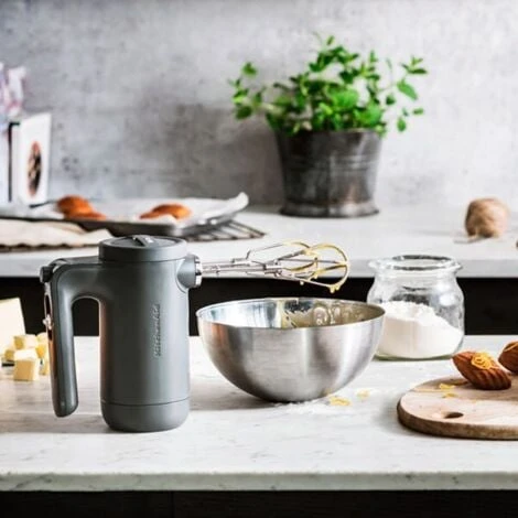 Feel free and enjoy power in the kitchen with this KitchenAid Cordless Hand Mixer, finished in Charcoal Grey.