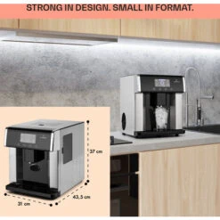 The powerful Eiszeit ice cube machine produces up to 15 kg of ice cubes a day. As a result, it is suitable for home use as well as for use at parties or garden parties. The operation of the ice cube maker is carried out easily and conveniently via the control panel with touch surface, whereby the ice cube size can be defined in three different sizes. The self-explanatory LCD display provides information about the choice made at any time.