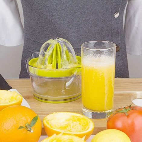 - EASY TO USE – The orange juicer is easy to use, the transparent plastic lemon squeezer can clearly see the juice capacity, and the filter can filter out seeds and fruit remains, which makes the more delicious juice. The orange press is also easy to clean. You can remove the juice cover and clean it quickly. The bottom of the container has a non-slip silicone strip that makes it difficult to move or fall during use.