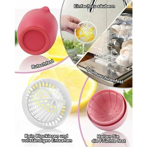 Unique design The interesting lemon shape makes this nice and small manual juicer different from others. Three kinds of colors can be chosen: soft pink, bright green and bright yellow. With exquisite packaging, the manual juicer will bring your kitchen a distinctive style.