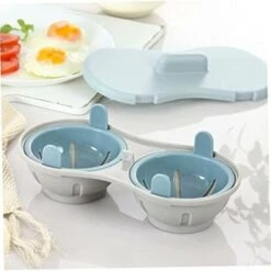 - Function: Boil two eggs in minutes, just add water, add eggs, prepare a delicious breakfast, save time and effort. Useafter steaming the eggs, rinse with water. High temperature and safety. Material: The microwave egg poachers are made of quality Bpa-free plastic material, non-toxic and harmless to human and eco-friendly. Design: Microwave double egg poacher, easy to take out eggs. : Thickened design, can withstand strong impact, anti-drop and pressure resistance, can perfectly dig eggs. Description: Main material: PP plastic. Net weight: about 166g. Color blue. Size: approx. (L*W*H) 22.1*11*7.4cm. Note: 1.1inch=2.45cm/1cm 0.393inch 2. Please allow 1-3cm error due to manual measurement. Please make sure you don’t mind before bidding. 3. Due to the difference between different monitors, the picture may not reflect the actual color of the item.