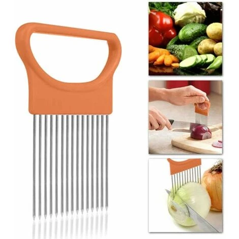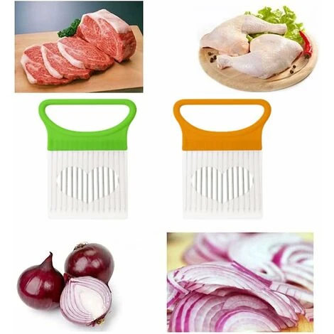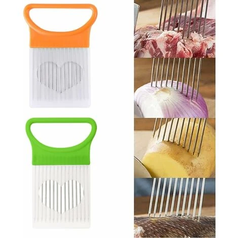 Onion holder, onion cutter tool, stainless steel onion holder, onion slicer, food slicing aid, onion slicer holder (2 pieces, orange and green)