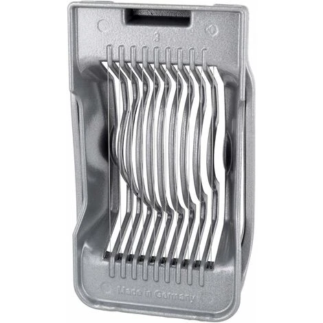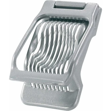 Slicer Efficient eggs, very stable and hygienic, made of aluminum with a special safety coating. eating. Ideal for cutting uniform round and oval egg slices 5mm thick.