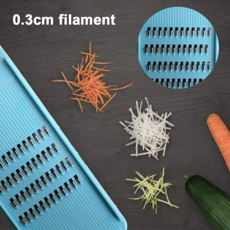 4.The stainless steel knife is strong, durable and reinforced with a frame so that the slicer does not bend during use. For quick and easy grating of vegetables, hard cheeses, carrots. Top quality carrot grater designed for ease of use and storage.