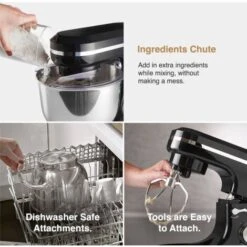 The tilt-head design means removing the mixing bowl is easy. The stand mixer also includes a safety switch to prevent accidental starts when not in the correct position. What’s more, the mixer’s compact and retro design in a glossy black finish will look great on any kitchen worktop.