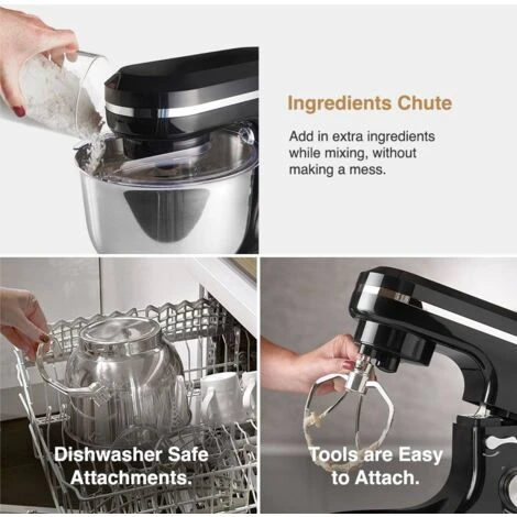 The mixing bowl, splash guard and balloon whisk are all dishwasher safe for fuss-free cleaning.