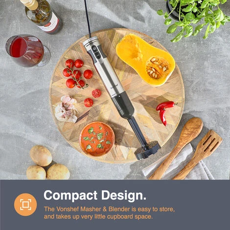 A detachable blender rod alongside a potato blender attachment allows for simple, stress free cleaning after creating your culinary masterpiece.