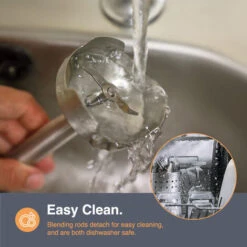 - Includes stainless steel blending rod with stainless steel blade